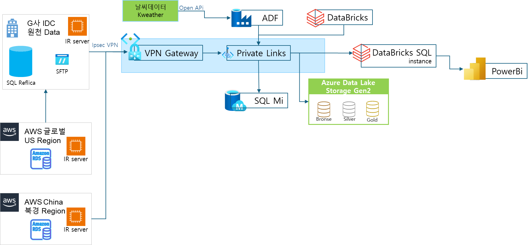 • 변환된 최종 데이터 Gold는 ADF가 SQL Mi로 이동 G사 내부 User 및 Application이 활용